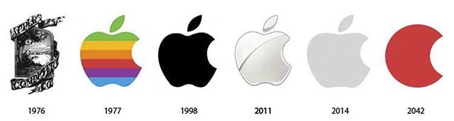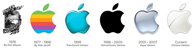 蘋果公司的logo設計中沒有使用任何字體。其標識的干凈和優雅的外觀不需要任何文字。現在你已經了解了蘋果logo設計的元素,讓我們通過歷史的眼光來看看它的演變: