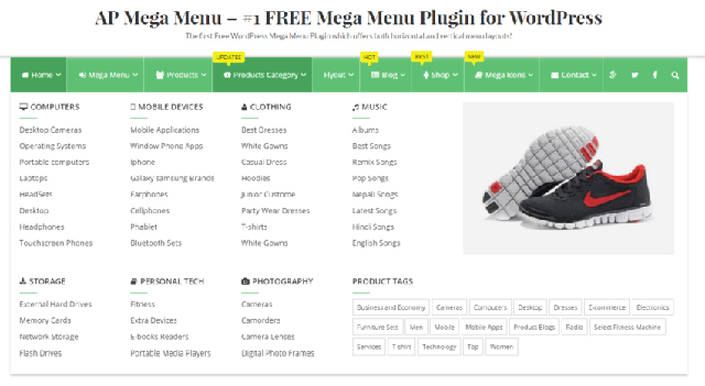巨型菜單是一種下拉菜單,當你點擊主菜單按鈕時就會顯示出來。它提供了一個詳細的視圖,并顯示了網站架構所隱含的所有子目錄。這樣的超大菜單非常適合在線商店。它們可以幫助買家瀏覽各種不同類型的類別,而不必求助于搜索功能,甚至不用離開你的網站去尋找結構更簡單的類似物。