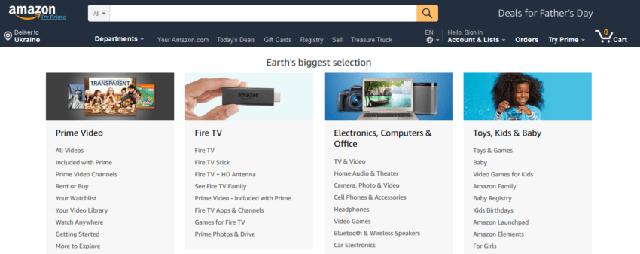 組織你的網站導航,你不需要重新發明輪子來確保一個直觀的界面。用與你的頁面相似的主題來評論網站更容易理解他們的長處。以在線商店為例。在這種情況下,你可以從最流行的平臺上獲得網站導航設計靈感,比如亞馬遜(Amazon)、沃爾瑪(Walmart),甚至可以嘗試一些更專業的東西——感覺獨特或IHerb(如果你賣化妝品的話)、Asos或6PM(如果你賣衣服的話)等等。