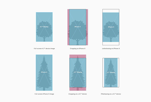在設計背景圖像時要記住,iPhone X的縱橫比也不同于4.7“顯示”。為iPhone 816:9的縱橫比創建的背景圖形需要調整以滿足iPhone X的技術要求。為了避免負面的結果,最好是構圖使關鍵的視覺信息保持可見,而不考慮顯示的長寬比。